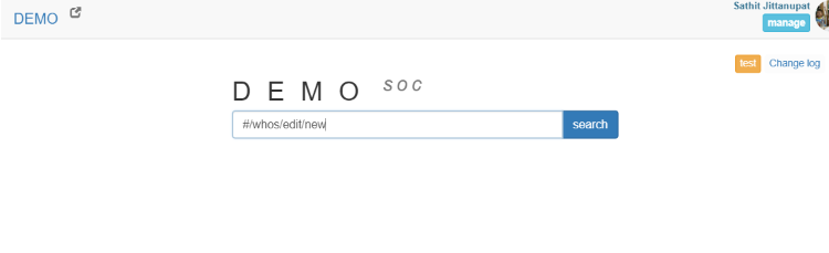 ภายใน search box ใส่คำสั่ง #/whos/edit/new