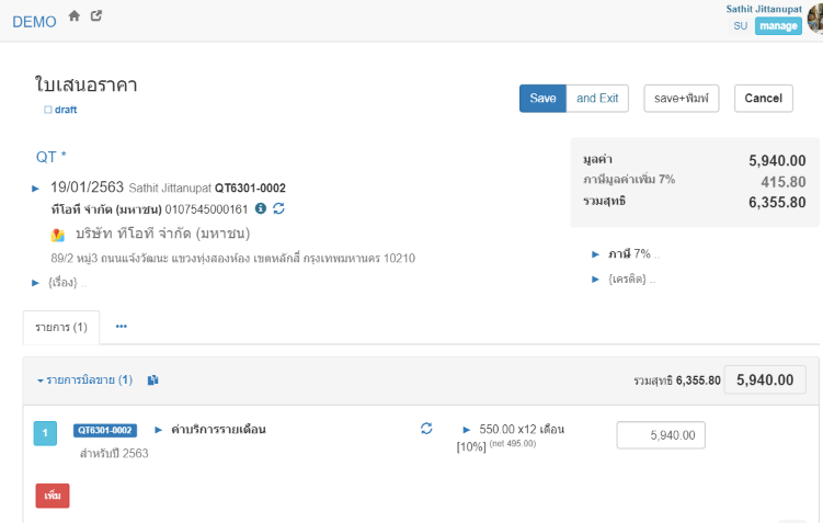 เราจะมีข้อมูลบิลที่บันทึกไว้แล้ว