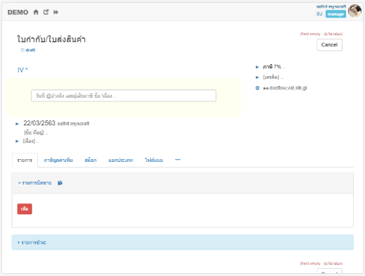 ใช้สำหรับ เพิ่มเอกสารใหม่ หรือเปิดบิล ตามหมวดที่ต้องการ