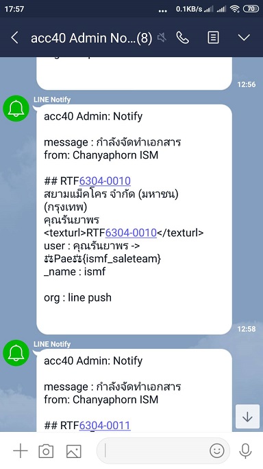 ตัวอย่างของงานบัญชี สามารถใช้ประโยชน์จากการสื่อสารถึงกันได้ เช่น เมื่อมีการจัดทำเอกสาร จะมีข้อความแจ้งไปยังพนักงานขายที่รับผิดชอบทราบอัตโนมัติ ช่วยให้พนักงานขาย สามารถรับรู้ความคืบหน้า โดยไม่ต้องเสียเวลาทวงถาม