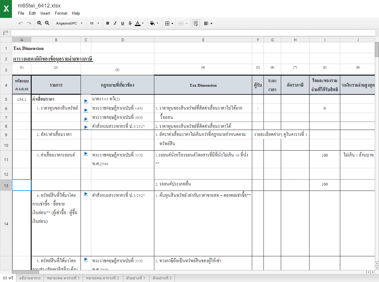 ภายในนั้นมีให้ดาวน์โหลดสิ่งที่เรียกว่า Tax Dimension? ส่วนใหญ่เป็นไฟล์ Excel (xlsx) เป็นแค่ตารางอธิบายมาตราต่างๆ และ Hyperlink อ้างอิง ดูเหมือนว่าเป็นมีลักษณะเป็น knowledge base ของข้อกฏหมายที่เกี่ยวข้องกับงานปรับปรุงกำไรทางภาษี