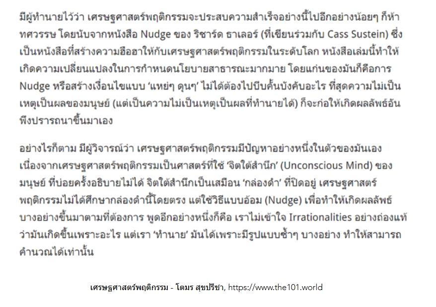 - เศรษฐศาสตร์พฤติกรรม https://www.the101.world/behavioral-economics/