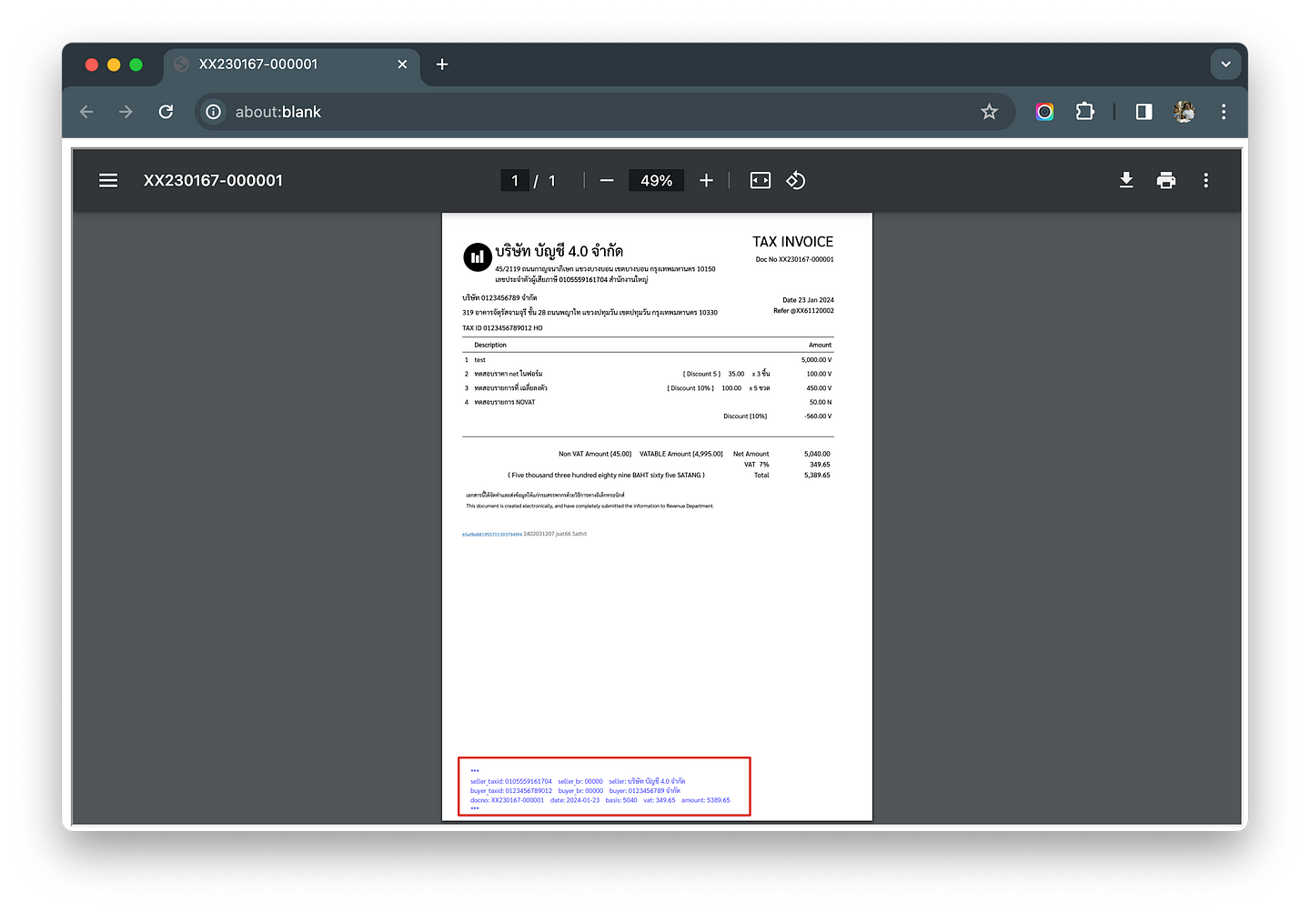 buyer_taxid: 0123456789012 buyer_br: 00000 buyer: 0123456789 จำกัด