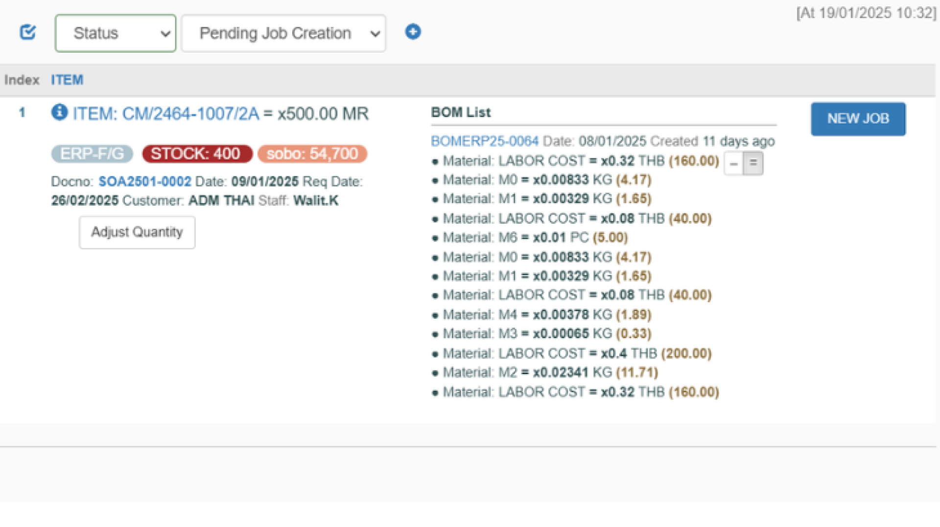 - แปลงคำสั่งซื้อเป็น Job Order ที่มีรายละเอียดชัดเจน เช่น สูตรการผลิต (BOM), ขั้นตอนการผลิต (Routing) และทรัพยากรที่ใช้