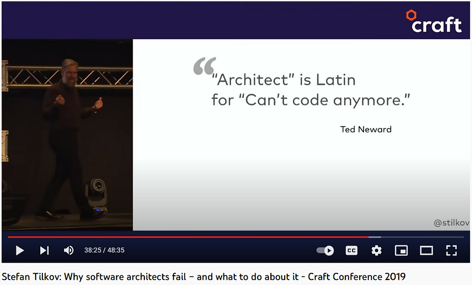ผมนึกถึงคลิปหนึ่งของ Stefan Tilkov ที่เล่าเรื่องความผิดพลาดของ [Architect](https://youtu.be/AkYDsiRVqno) ในนั้นมีสไลด์ที่ quote คำที่ผมมักจะนึกถึงบ่อย ๆ