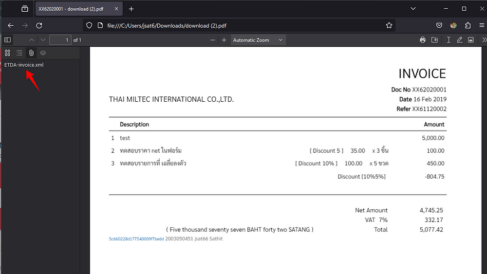 āļāļāļāļāļēāļāļāļĩāđāđāļĢāļēāļāļēāļāđāļāđ XML āļāļēāļ E-Tax Invoice āļāļąāļ§āļāļĢāļīāļāļāļĩāđāđāļāđāļ PDF āļāļēāļāļĢāđāļēāļāļāđāļē āļāļĢāļāļĩāļāļĩāđāđāļĢāļēāļŠāļēāļĄāļēāļĢāļāđāļĒāļ XML file āļāļĩāđāļāđāļāļāļāļĒāļđāđāļāđāļēāļāđāļ PDF āļāļāļāļĄāļē āđāļāļĒāđāļāđāđāļāļĢāđāļāļĢāļĄ Firefox browser (āļŦāļĢāļ·āļ Adobe PDF Reader)