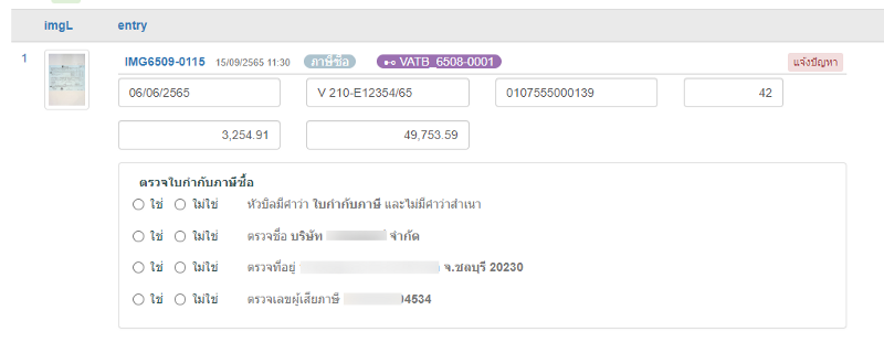 * ตรวจเลขผู้เสียภาษี (ตรงกับของผู้ประกอบการ)