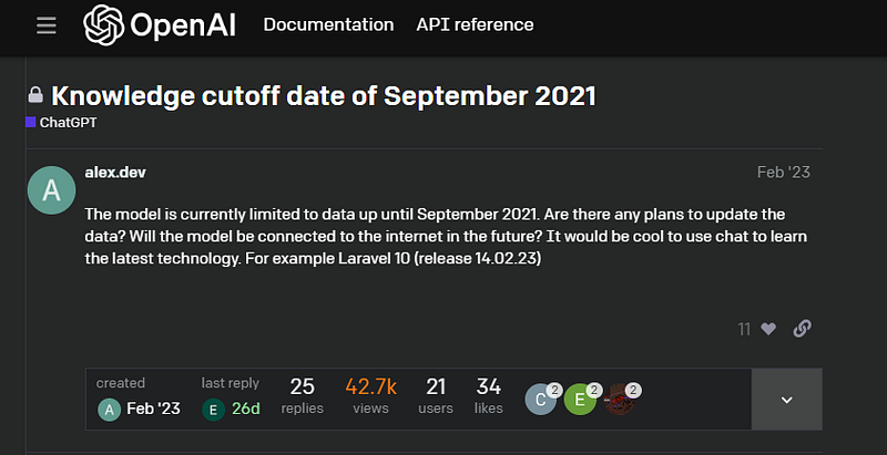 ผู้สร้าง AI มักบอกข้อจำกัดสำคัญให้ผู้ใช้รับรู้ว่า คลังความรู้ของ AI มีถึงแค่วันที่เท่าไหร่ ซึ่งหมายความว่าหากถามถึงเหตุการณ์ที่เกิดขึ้นหลังจากวันนั้น จะตอบไม่ได้ หรือได้คำตอบไม่ถูกต้อง