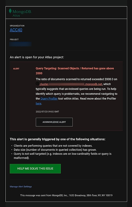 เมื่อถึงตอนนั้น สัญญาณเตือนจาก Atlas แจ้งว่ามี Document Scan กับข้อมูลจำนวนมาก เริ่มทะยอยเข้ามา แต่คุณก็อยู่กับมันนานจนคุ้นเคย ได้เวลาทำความใจเรื่อง index และการออกแบบ query ที่ดี เพื่อให้ดาต้าเบสกลับไปมีประสิทธิภาพอีกครั้ง